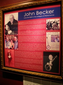 John Becker was inducted in April 2009 in the Performance category. He and his wife were able to attend the ceremony and receive the award personally. Ten members of the St. Louis banjo Club along with spouses attended this special tribute to John.